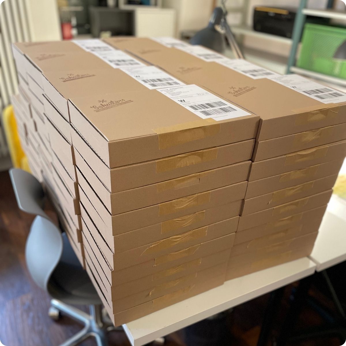 Direktversand an Filialen, Büros oder einzelne Empfängerinnen und Empfänger. Auf Wunsch neutral oder mit Branding, gebündelt oder einzeln verschickt.