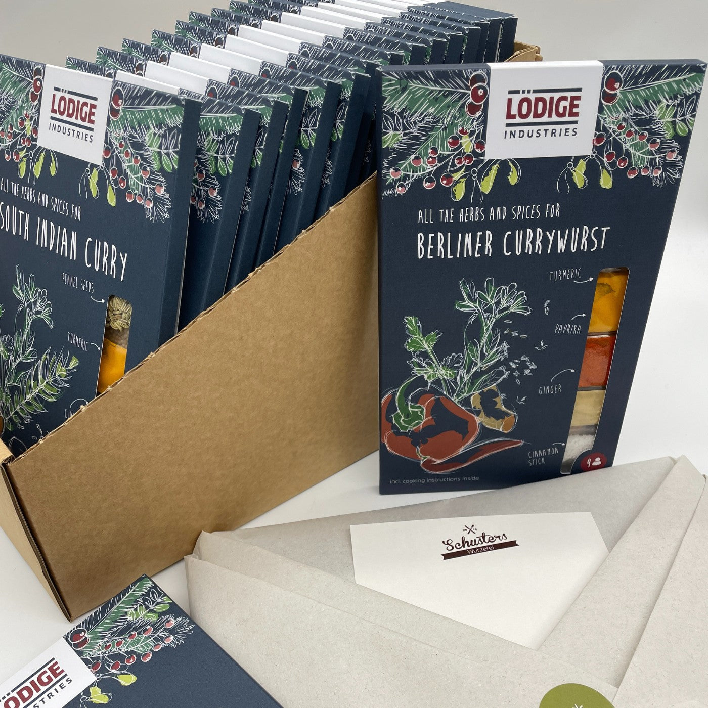Als Weihnachtsgeschenk für die Mitarbeitenden setzte die Firma Lödige auf individuell angepasste Gewürzsets aus der Schusters Würzerei.